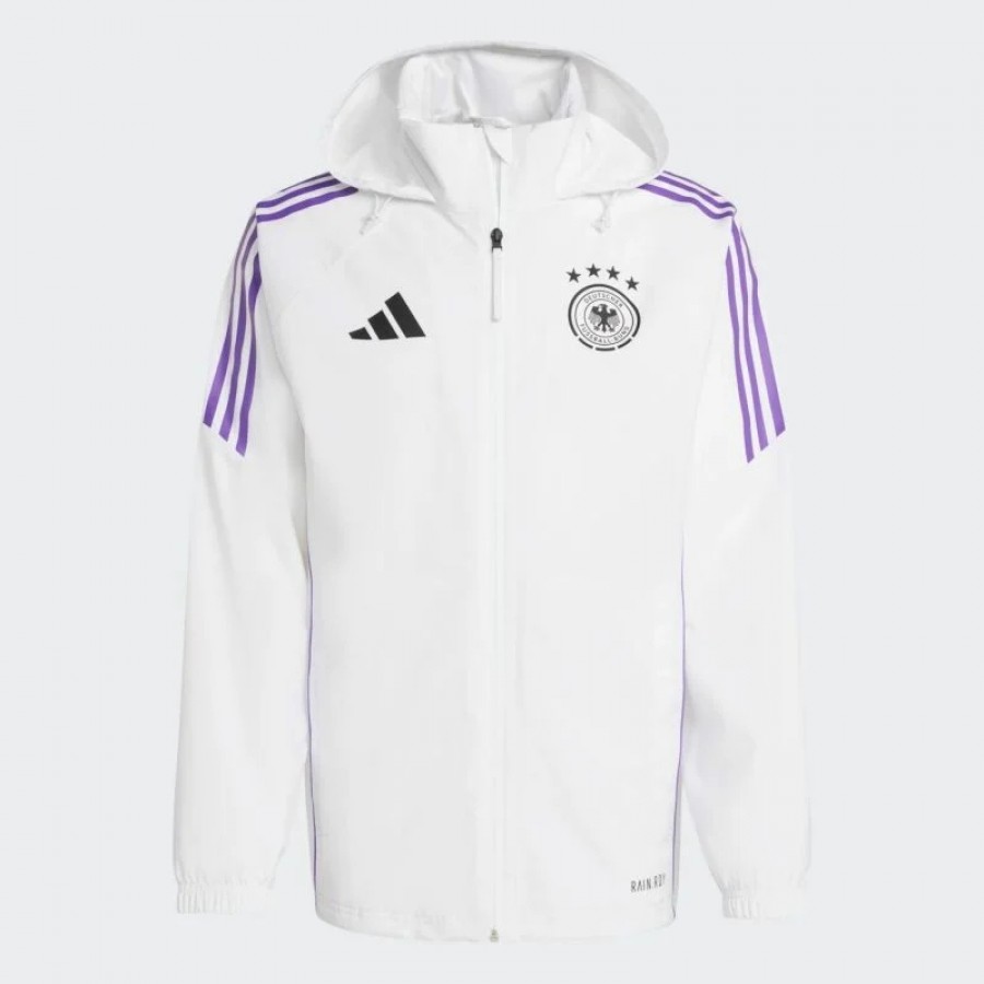 No matter the weather, your passion for the game remains unshaken. The adidas Germany Mens Tiro 24 Player Rain Football Jacket 2024-25 is a genuine piece of DFB team gear, embodying authenticity and showcasing the true spirit of the team. Featuring a convenient bungee-adjustable hood and RAIN.RDY technology, this jacket ensures you stay dry and focused on your training, even under rainy conditions. When the skies clear, you can easily pack the hood away, but the iconic Germany crest will always be proudly displayed, emphasizing your connection to the team.
