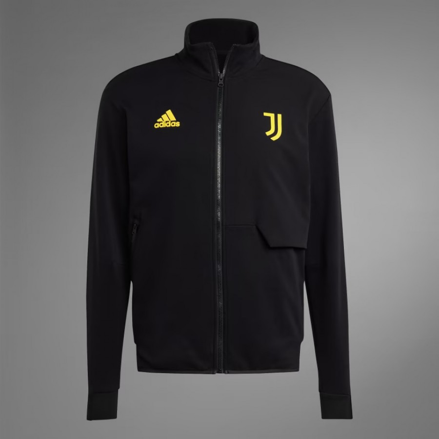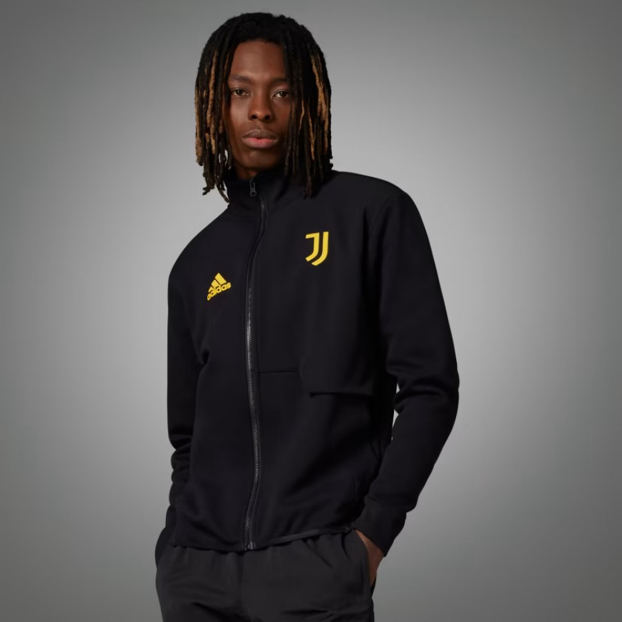 From the stadium to the sidewalk, show off your team pride in the Juventus Mens Anthem Football Jacket 23-24. Built for togetherness and worn by top players in the pre-match lineup, the imposing allover black design and embroidered club crest is a striking ode to your favorite club. Cut for a regular fit with premium ribbed finishes, the jacket features a full-zip design with a standup collar for ultimate coziness. With a zip pocket on one side and a slip-in pocket on the other, it'll keep all your essentials securely stowed so you can focus on what's important: supporting your team.